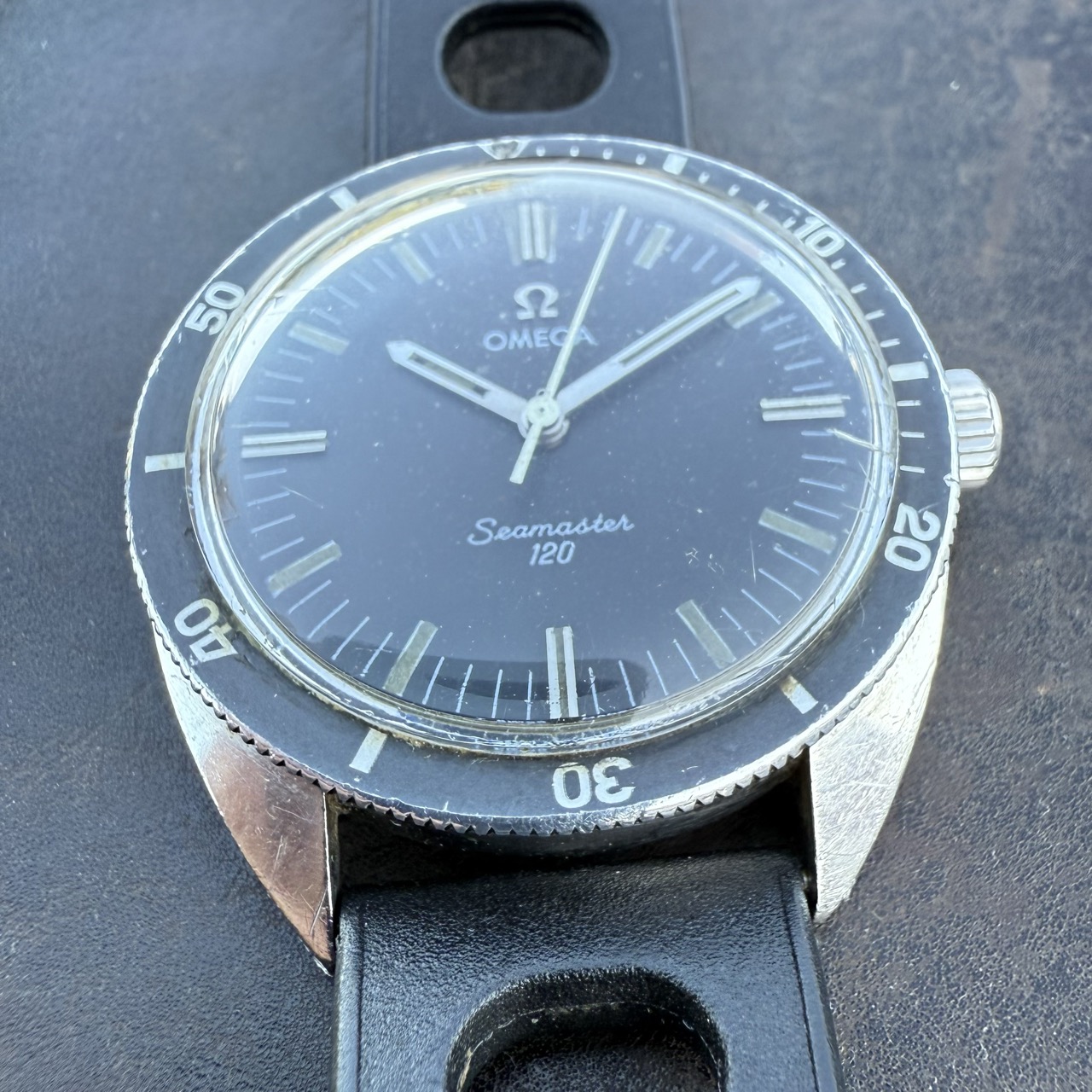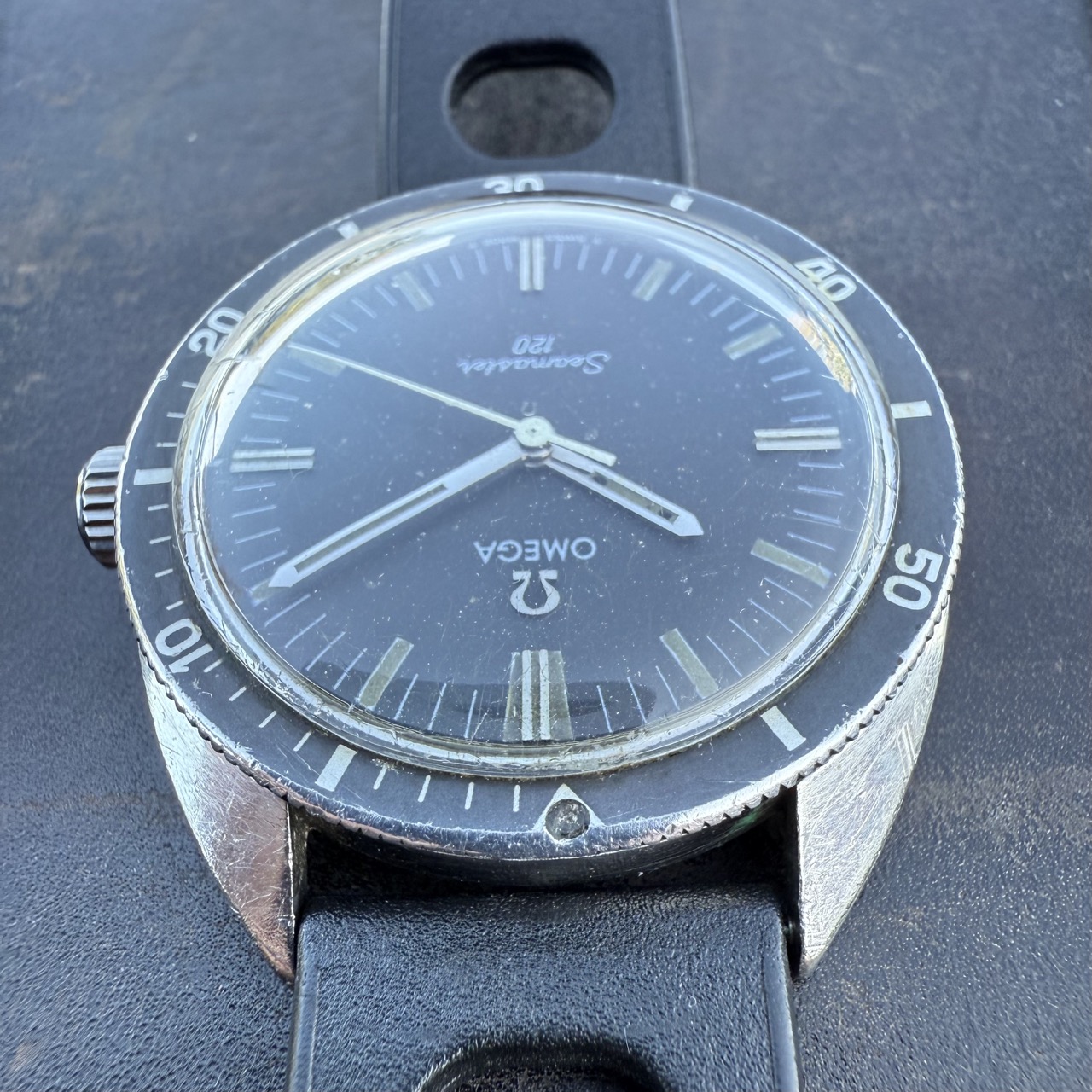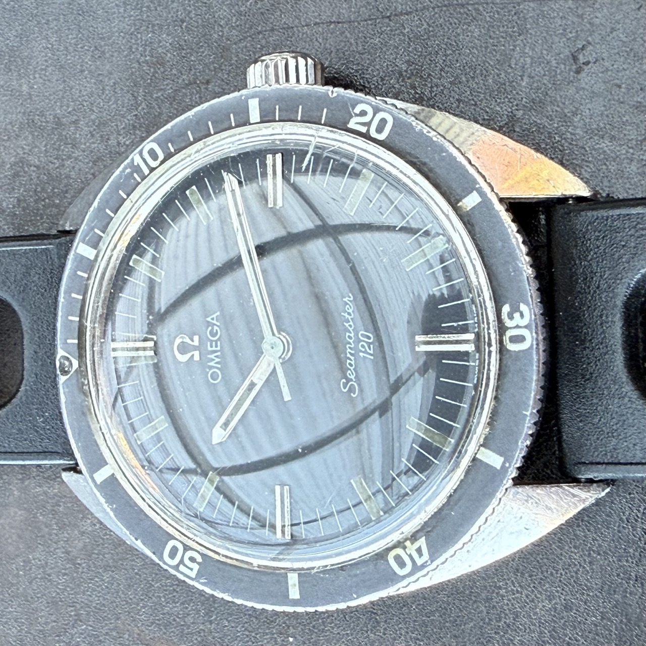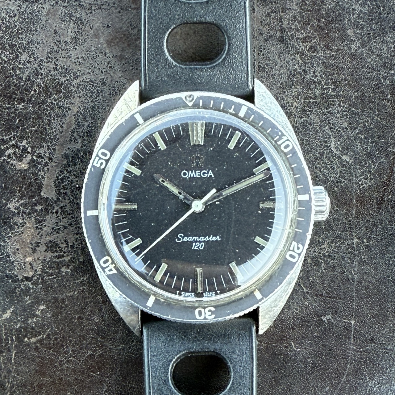 Zum Verkauf steht eine Omega Seamaster 120, Referenz 135.027, ein klassischer Skin Diver aus den späten 1960er-Jahren. Dieses Exemplar befindet sich in einem ehrlichen, unaufgearbeiteten Originalzustand – genau das, was Sammler schätzen.